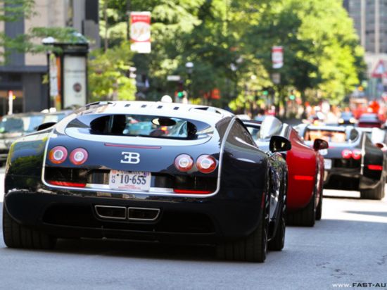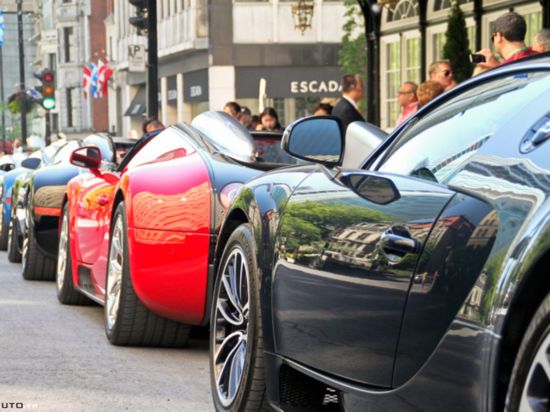 ??? 在上周末剛剛結(jié)束的F1蒙特利爾站上,劉易斯哈密爾頓如愿的把冠軍獎杯抱回了家。然而在F1的賽場外還有另一場盛會,在蒙特利爾的街頭聚集了5輛布加迪威航,預估參加這次聚會的布加迪總價值加起來近1.4億元人民幣。