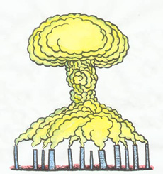 ??? 蘑菇云,戰(zhàn)爭和死亡的代名詞,人們說起它無不避若蛇蝎,然而可笑的是,人類對于空氣污染,全球變暖,這顆無形的原子彈卻是重視不足,任它漸漸發(fā)揮出威力。須知,戰(zhàn)爭只能毀滅一個國家或者民族,但是污染地球,導致的是就是全人類的滅亡。