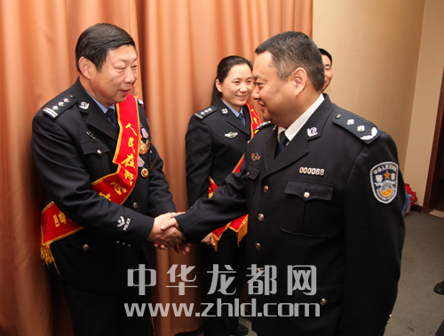 市政府黨組成員、公安局長(zhǎng)姚天民會(huì)見報(bào)告團(tuán)成員。