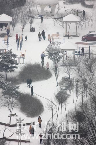 昨天,周口中心城區(qū)被大雪覆蓋。濱河公園里游人如織。晚報(bào)記者 金月全 攝