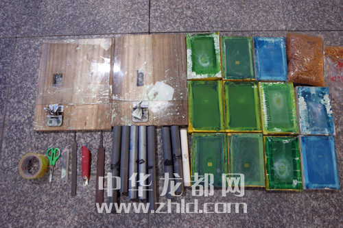 ????同年11月5日,在獲知許某、韓某夫婦再次從廣東購得假幣,并已伙同孟某完成防偽加工工序的準(zhǔn)確信息后,為避免假幣流入市場(chǎng),周口公安機(jī)關(guān)經(jīng)偵部門“收網(wǎng)”。11月6日,市公安局犯罪偵查支隊(duì)經(jīng)偵三個(gè)大隊(duì)全體民警在文昌分局許灣中隊(duì)、沈丘縣公安局經(jīng)偵大隊(duì)的協(xié)同配合下,直撲犯罪窩點(diǎn)。于當(dāng)天下午2時(shí)許,在沈丘縣抓獲犯罪嫌疑人韓某、孟某及其他涉案人員,并在孟某家中當(dāng)場(chǎng)繳獲假幣數(shù)百萬元(圖一),假人民幣加工模具12套(圖二)。