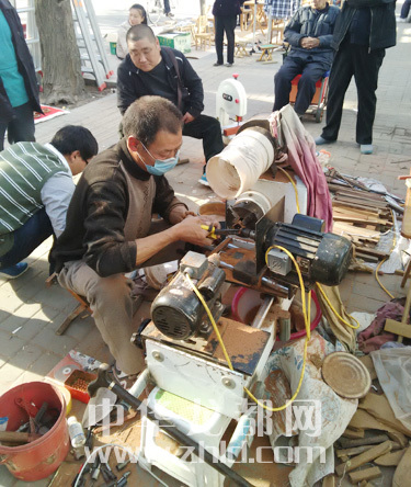 在周口市區(qū)七一路與文明路交叉口南側(cè),記者看到有幾個(gè)現(xiàn)場(chǎng)加工制作手串的攤點(diǎn),攤點(diǎn)旁邊擺放著小型車床、圓珠摩擦器,崖柏、杉木、紅松等木條及一些手串半成品。