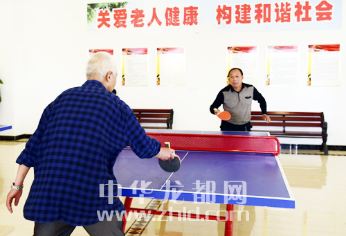 在融輝城老年人健身中心,老人們揮拍激戰(zhàn)。 (記者 沈湛 攝)