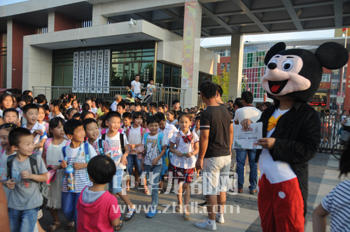 ????9月1日17時許,在慶豐路周口市文昌小學(xué)門前,家長們看到周口晚報工作人員在派發(fā)禮品,紛紛掏出手機(jī),掃描二維碼關(guān)注周口晚報微信公眾號(圖一)。17時40分,放學(xué)的孩子們排著整齊的隊(duì)伍陸續(xù)走出校門。校門外,由周口晚報記者扮演的米老鼠和唐老鴨“大玩偶”吸引了孩子們的目光(圖二)。孩子們興奮地同“大玩偶”玩耍起來。有玩的,還能免費(fèi)領(lǐng)取學(xué)習(xí)用品,孩子們大聲召喚家長加入到掃描二維碼關(guān)注周口晚報微信公眾號的“大軍”中來。市民趙先生說:“我是咱晚報的忠實(shí)讀者,正準(zhǔn)備訂閱明年的報紙,還打算讓孩子參加晚報組織的小記者活動呢!”