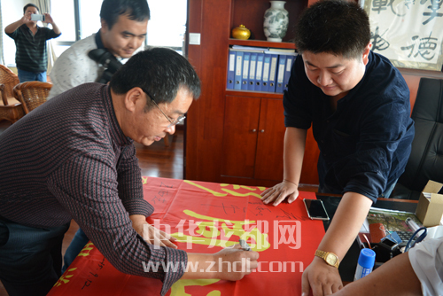 ????張林在“出彩周口人”旗幟上簽名
