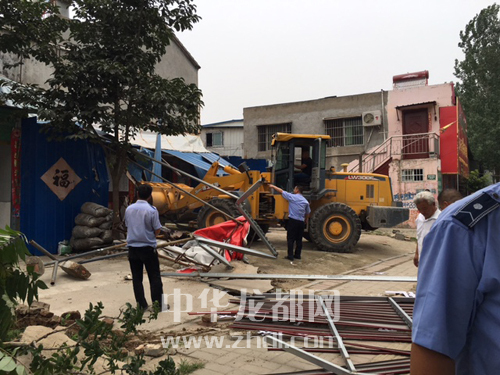????正當拆除違章建筑物順利進行之時,一家飯店老板順著梯子爬上了二層的違章棚棚頂,與城管隊員“對峙”,令拆除工作一度陷入僵局。通過對其及家人細致地宣傳與講解,最終,店主既心疼又懊悔地看著自家的違章棚變成一堆廢銅爛鐵。