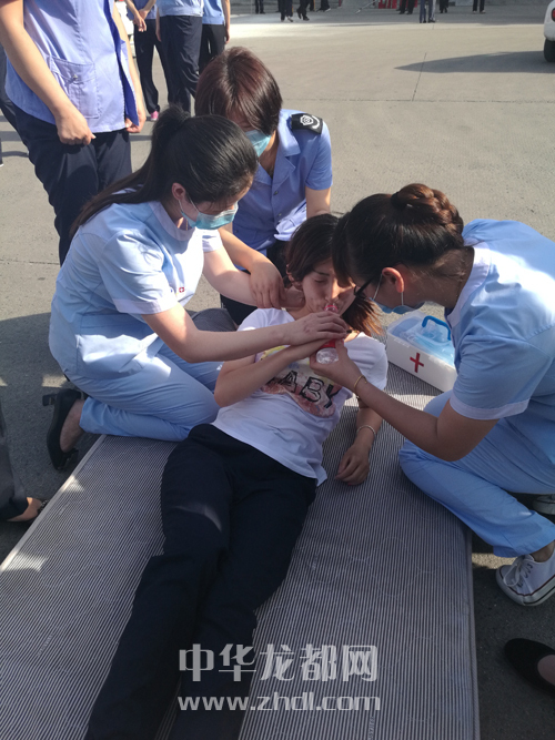 ????在模擬車站大廳發(fā)生火災(zāi)的演練中,車站值班站長第一時(shí)間撥通119、120求救,并組織工作人員幫助旅客有序撤離。車站醫(yī)療搶救組對撤離到安全地帶的受傷旅客進(jìn)行施救(如圖二)。大廳內(nèi)人員全部撤離后,救援人員手持滅火器迅速組織滅火(如圖三)。