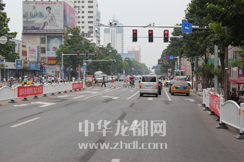 ????據(jù)了解,隨著七一路(六一路至中州大道段)的升級(jí)改造完成,該路段路面拓寬,通行非常暢通,還增加了很多人性化、都市化的設(shè)施:雙向4車道變成雙向9車道,路口的紅綠燈變成雙信號(hào)燈(圖一),取消了安全島,重新施劃了非機(jī)動(dòng)車道和行人斑馬線(圖二),增加了左轉(zhuǎn)帶調(diào)頭標(biāo)線等。