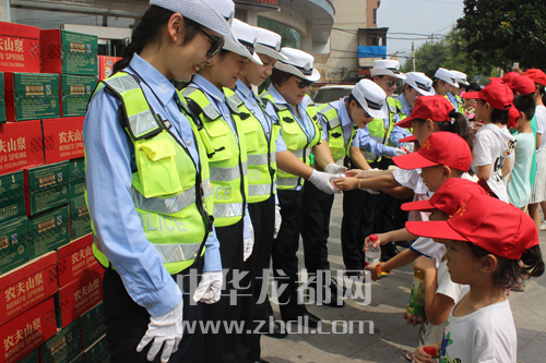 ????當(dāng)前,創(chuàng)建省級(jí)文明城市工作正在周口中心城區(qū)廣泛開展,整個(gè)城市越來(lái)越干凈美麗,城市文明程度不斷提升。8月15日上午,在八一大道和七一路交叉口,團(tuán)市委組織數(shù)十名志愿者和孩子協(xié)助交警維護(hù)交通秩序。看到交警阿姨熱得汗流浹背,孩子們紛紛將礦泉水送到她們手中。晚報(bào)記者 王凱 攝