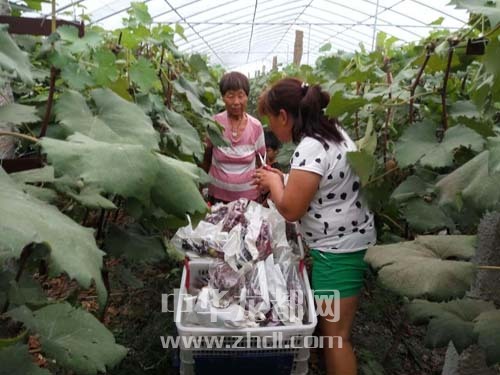 ????在農(nóng)場(chǎng)的葡萄大棚里,一串串葡萄被套上了塑料袋,形成了五顏六色的奇特景觀,社員正忙著采摘裝箱(如圖)。農(nóng)場(chǎng)技術(shù)人員介紹:“給葡萄套袋,可以明顯改善果實(shí)品質(zhì),保護(hù)果實(shí)不受病蟲害侵襲,減少農(nóng)藥殘留,防鳥啄食,改善果實(shí)外觀,提高果品檔次,是當(dāng)前生產(chǎn)高品質(zhì)、無公害葡萄的有效措施。”