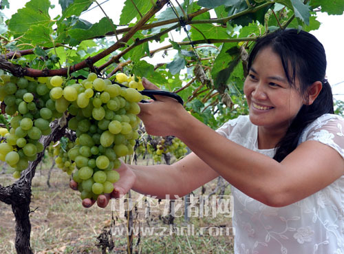 ????金秋送爽,一名游客在玉桂千畝生態(tài)葡萄園采摘葡萄。近年來,我市積極推進(jìn)農(nóng)業(yè)示范園建設(shè),打造了玉桂千畝生態(tài)葡萄園等一批特色農(nóng)業(yè)基地,創(chuàng)新農(nóng)業(yè)旅游融合發(fā)展思路,引導(dǎo)特色農(nóng)業(yè)基地開發(fā)建設(shè),取得了良好效果。據(jù)了解,玉桂千畝葡萄園堅持走規(guī)?;?、生態(tài)化、精品化、綠色化的路子,15種國內(nèi)優(yōu)質(zhì)葡萄品種可持續(xù)采摘至9月中下旬。