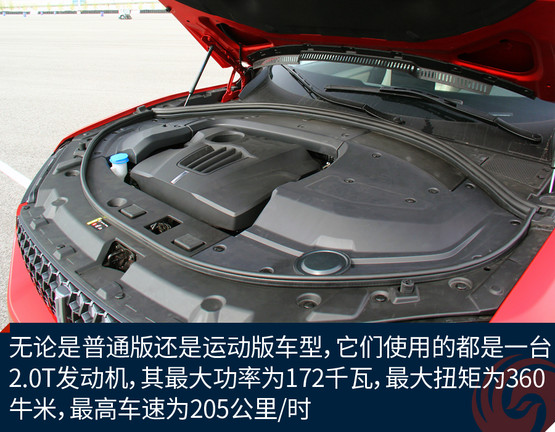 普通版和運動版車型只提供一套動力系統(tǒng),發(fā)動機是一臺2.0T直噴發(fā)動機,技術上采用了雙流道渦輪增壓以及缸內(nèi)直噴技術;其最大功率為172千瓦,最大扭矩為360牛米,這臺發(fā)動機跟哈弗H7上的是一樣的。變速箱方面,新車匹配的是長城自主研發(fā)的7擋濕式雙離合變速器。