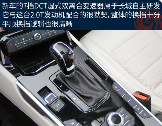 由于渦輪介入的時間稍晚一些,起步時不會讓你感覺特別的輕快,但也不會差到讓你無法接受,只要保持平常心就好;當這臺2.0升的渦輪增壓直噴發(fā)動機真的卯足了勁發(fā)力之后,360牛米的最大扭矩完全不是鬧著玩的,后背感覺有人在猛使勁的把你向前推。長城自主研發(fā)的7擋濕式雙離合變速器是新車的一大亮點,日常駕駛的過程中升降檔都有著不錯的平順性,不過起步初期離合器結合的速度還是稍微有一些慢,急加速時變速箱的反應也不夠靈敏,這在一定程度上拖累了整體的動力表現(xiàn)。