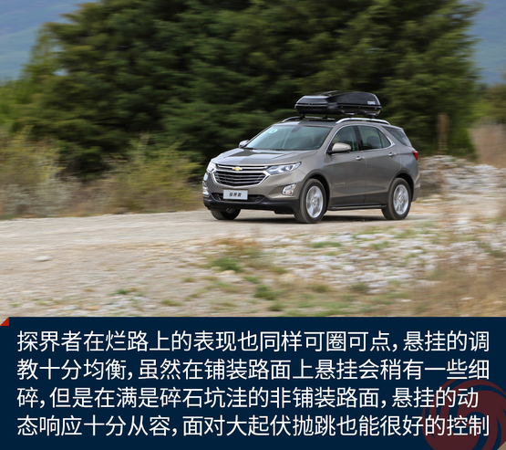 探界者在爛路上的表現(xiàn)也同樣可圈可點,懸掛的調(diào)教十分均衡,雖然在鋪裝路面上懸掛會稍有一些細(xì)碎,但是在滿是碎石坑洼的非鋪裝路面,懸掛的動態(tài)響應(yīng)十分從容,而且面對一些大起伏的拋跳也能很好的控制車身的起伏。