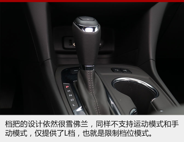 有一點(diǎn)我不是很明白,雪佛蘭最新的設(shè)計(jì)理念已經(jīng)開始向運(yùn)動(dòng)發(fā)展,但是它旗下的車型都不帶有運(yùn)動(dòng)模式和手動(dòng)換擋模式,僅僅是提供了L檔,也就是所謂的限位檔,通過檔把上方的加減按鍵可以手動(dòng)使變速箱限制在相當(dāng)?shù)臋n位上,D檔模式下此按鍵無(wú)效。