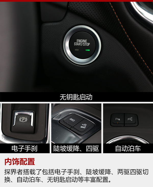 對(duì)于探界者的行駛質(zhì)感其實(shí)沒有什么可說的,完全可以參考昂科威,它將美系車傳統(tǒng)的優(yōu)點(diǎn)就是底盤的整體性和隔音很好的傳承下來。在動(dòng)力輸出的平順性和迅捷性上也一改通用一直以來的不良表現(xiàn),加上不錯(cuò)的動(dòng)力表現(xiàn),550T的探界者作為一臺(tái)家用SUV已經(jīng)完全足夠了,并且還帶有了一些運(yùn)動(dòng)的氣息。