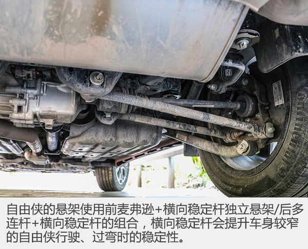 讓我找一些詞來形容自由俠的底盤表現(xiàn)的話,我只能用滿意、很滿意和非常滿意來表述;在河道里的大石頭和側(cè)傾路就表現(xiàn)出了很好的過濾和穩(wěn)定,然而在公路上的表現(xiàn)同樣優(yōu)秀,優(yōu)秀的側(cè)傾抑制讓我顛覆了一直以來對Jeep的印象。想必這一切和防傾桿、橫向穩(wěn)定桿和來自荷蘭KONI的FSD可變阻尼減震器有關(guān)。