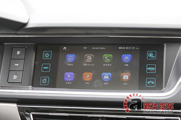 7英寸多媒體顯示屏采用觸控式操作,實(shí)際測試靈敏度較高,集成導(dǎo)航、藍(lán)牙等功能。后視鏡加熱按鍵被設(shè)置在了下方控制區(qū)。