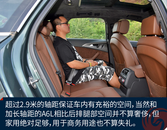 ????????作為中大型豪華車衍生的旅行轎車,A6 Avant提供了充足的乘坐空間,當(dāng)然后排不會(huì)像加長(zhǎng)軸距的A6L那么奢侈,不過作為商務(wù)接待并不嫌失禮。身高180cm的人在后排足夠舒適,加上旅行車車頂輪廓高挑,后排乘客頭部空間還優(yōu)于三廂轎車。