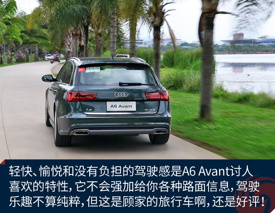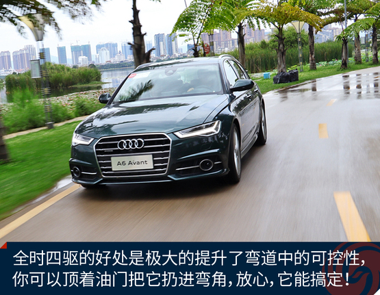 ????????作為原裝進(jìn)口車,奧迪A6 Avant的底盤懸掛設(shè)定不像國(guó)產(chǎn)奧迪A6L那種偏向關(guān)照后排的VIP,再加上標(biāo)配運(yùn)動(dòng)型懸掛縮減了懸掛行程,A6 Avant旅行車開起來明顯比A6L來的犀利和動(dòng)感,我并不是說它像RS 6 Avant那樣有種讓人上癮而無法自拔的“毒力”,但作為一臺(tái)有著濃郁個(gè)人主義色彩又需要兼顧全家使用的車型,奧迪A6 Avant是那種該穩(wěn)就穩(wěn),要快也能快的理想設(shè)定。