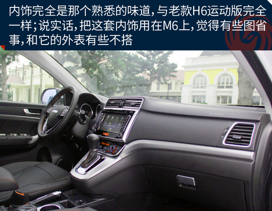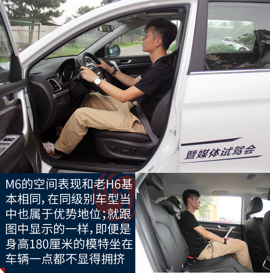 ????????M6的空間表現(xiàn)在同級別車型當(dāng)中屬于優(yōu)勢地位,主要原因就是內(nèi)部空間和H6基本沒區(qū)別。特別得說新車的座椅,很柔軟、舒服,包裹性也不錯(cuò)。不過坐姿真的有點(diǎn)高,前排座椅調(diào)到最低后還是能看到整個(gè)機(jī)艙蓋,這樣倒是為了安全性;后排的座椅還要更高一些,有點(diǎn)類似劇院式的設(shè)計(jì),給后排乘客減少了壓抑感。