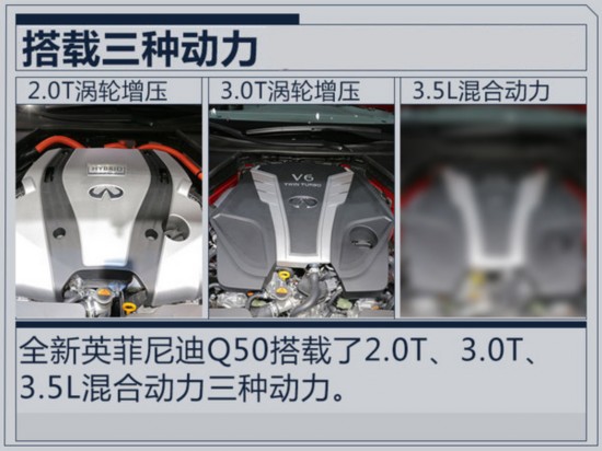 動(dòng)力方面,全新英菲尼迪Q50搭載了2.0T、3.0T渦輪增壓發(fā)動(dòng)機(jī)。2.0T渦輪增壓發(fā)動(dòng)機(jī)最大功率155kW;3.0T渦輪增壓發(fā)動(dòng)機(jī)最大功率298kW。此外,新車還增搭了一臺(tái)3.5L V6混合動(dòng)力發(fā)動(dòng)機(jī),屆時(shí)油耗將大幅下降。