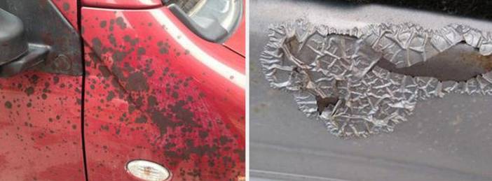 ????????酸性的雨水落到車上,雨水會被蒸發(fā),但酸性的物質(zhì)可能還會留在你的車身表面,時(shí)間一長便會腐蝕你的車漆。