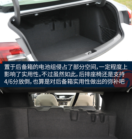 ????????置于后備箱的電池組侵占了部分空間,空間表現(xiàn)由燃油車型的434升縮至328升,在一定程度上影響了實(shí)用性。不過雖然如此,后排座椅還是支持4/6分放倒,這也算是對(duì)后備箱實(shí)用性做出的彌補(bǔ)吧。