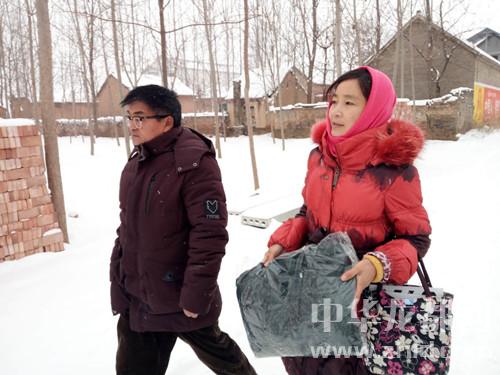 中華龍都網(wǎng)訊 (周口報(bào)業(yè)全媒體記者馬治衛(wèi)文/圖)雪中的豫東大地,一片銀裝素裹。1月4日,太康縣常營(yíng)鎮(zhèn)脫貧戶李紅欣喜地收到了該縣扶貧干部葛澤周一行冒雪送來(lái)的棉襖。同葛澤周一樣,當(dāng)日太康縣萬(wàn)余名黨員干部雪中忙幫扶。