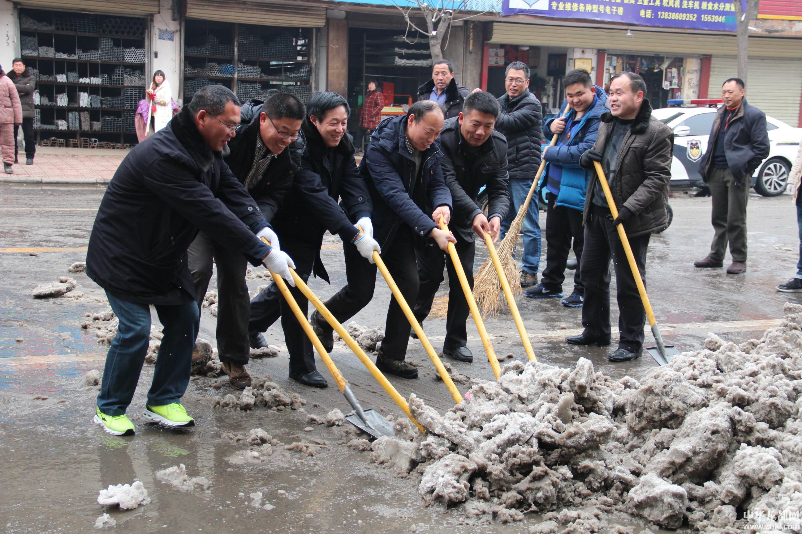 中華龍都網(wǎng)訊(周口報業(yè)全媒體記者 謝永靜  通訊員 葛清華 王冬晉)瑞雪兆豐年。雪在帶給人們美景、希望和期許的同時,由于夜間氣溫驟降,道路結(jié)冰,給人們的出行帶來了極大的不便和安全隱患。為保障道路通暢、群眾出行安全和環(huán)境整潔,扶溝縣委、政府號召干部職工到所包路段清掃積雪。