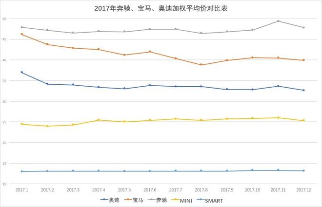銷售的數量固然重要,但是銷售質量也是評估銷售力不能忽視的重要指標。衡量銷售質量,“加權平均成交價”和“單車利潤”這兩個重要參數,也許讓我們更直觀的看到車企的銷售能力與經銷商單店經營質量。這些更微觀的數據往往更能反映銷售公司及其經銷商體系的銷售能力及水平。“加權平均成交價”反映車企的產品力與銷售公司的銷售能力,車企賣掉的車越多,單車價格越貴,品牌就越具有競爭力,反之就需要考慮改進產品,提升銷售管理能力?!皢诬嚴麧櫋敝附涗N商銷售新車獲取的利潤,不含衍生利潤,一般在-4%-7%之間,如果單車利潤超過-2%,廠家需要考慮對經銷商進行補貼,如果利潤超過7%,車企就會調整經銷商浮動返利。下面我們通過這兩個指標,來看哪些豪華車品牌在2017年表現(xiàn)更具實力。