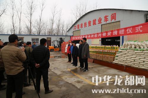 中華龍都網(wǎng)訊 (周口報業(yè)全媒體記者張勁松 通訊員 蘇千) 新年送溫暖,扶貧獻愛心。1月28日下午,東新區(qū)許灣鄉(xiāng)創(chuàng)興裝飾公司暨扶貧車間慰問貧困戶捐贈儀式在許灣鄉(xiāng)精準扶貧就業(yè)車間隆重舉行。當(dāng)日,該公司為許灣鄉(xiāng)貧困戶捐贈了價值6萬余元的米、面、油等扶貧物資。許灣鄉(xiāng)黨委書記李培華,東新區(qū)紀檢監(jiān)察室副主任、許灣鄉(xiāng)于莊行政村第一書記高賓及企業(yè)相關(guān)負責(zé)人出席儀式。