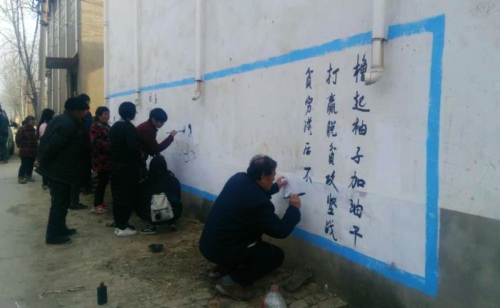 中華龍都網(wǎng)訊(周口報業(yè)全媒體記者 高洪馳 通訊員徐濤)為進(jìn)一步增強(qiáng)群眾脫貧致富的信心和決心,鄲城縣委、縣政府依托本縣“中國書法之鄉(xiāng)”的優(yōu)勢,緊扣“脫貧致富奔小康”主題,在全縣23個鄉(xiāng)鎮(zhèn)(辦事處)1228個自然村組織舉辦脫貧攻堅(jiān)知識萬人書畫文化下鄉(xiāng)行活動。自活動開展以來,近萬人次的書畫家已書寫脫貧攻堅(jiān)作品36840幅,每村墻體書畫作品30幅左右,義寫春聯(lián)4萬余幅,受到了廣大群眾的歡迎。