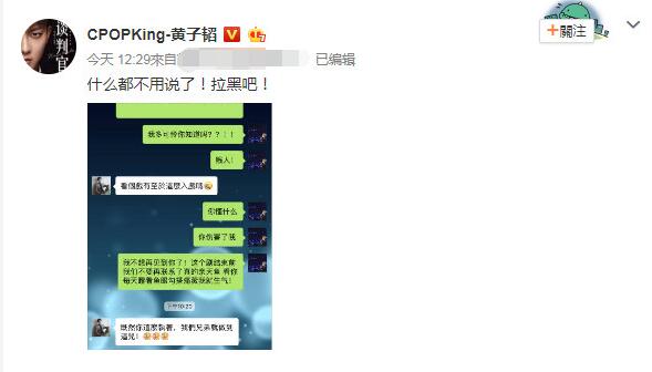 黃子韜12日在微博上分享一張與郭品超的對(duì)話截圖,并在發(fā)文中生氣地寫(xiě)道:“什么都不用說(shuō)了!拉黑吧!”他似乎是在看了最新播出的2集《談判官》后,為自己劇中的遭遇感到憤憤不平,立刻找郭品超算賬直呼:“親天魚(yú)(秦天宇,郭品超劇中角色)我告訴你,今天這兩集我看的很不爽!你太壞了,真的,你合伙搞我。我多可憐你知道嗎?!賤人!”