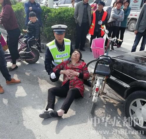 中華龍都網(wǎng)訊(周口報業(yè)全媒體記者 徐松 通訊員 王中華)3月29日上午9時許,鄲城縣交警大隊交警閆邵梁、潘俊飛、肖冰冰正在新華路府西路路口執(zhí)勤,突然一輛黑色轎車與一位騎自行車的老人發(fā)生碰撞,發(fā)生碰撞后騎自行車的老人當時趴在自行車上,不能動彈。