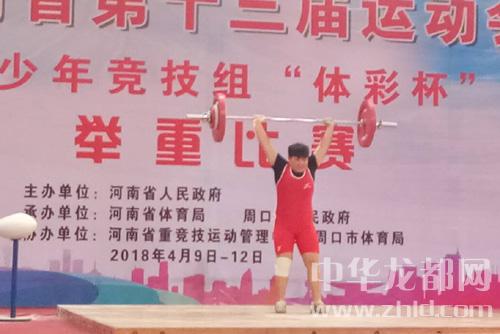 中華龍都訊(記者姬慧洋文/圖)4月9日下午,省十三運(yùn)會(huì)青少年競(jìng)技組舉重比賽女子乙組+69公斤級(jí)比賽在周口市體育中心開(kāi)賽,來(lái)自全省的10位選手經(jīng)過(guò)激烈角逐,17歲周口小將林翠愛(ài)以抓舉75公斤、挺舉95公斤,總成績(jī)170公斤的戰(zhàn)績(jī),為周口代表隊(duì)再添一金。