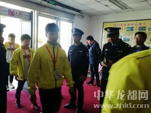 在市體育館的入口處設有安檢門,門口兩側各有4名民警檢查進入場館的人員證件,無論是工作人員還是運動員、裁判員都必須憑組委會發(fā)放的證件方能進入。另有2名民警手持金屬探測儀,在進入的人員身上探測可疑金屬,以防止有人誤帶管制刀具等違禁品進入場館內。進入當日舉行舉重比賽的場館后,記者看到有身穿警服的民警在現(xiàn)場不時走動,維持賽場秩序。