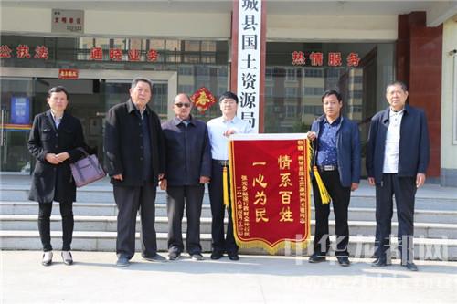 中華龍都網(wǎng)訊(周口報(bào)業(yè)全媒體記者 徐松 通訊員 陳吳陸)5月3日,鄲城縣張完鄉(xiāng)趙樓行政村村民代表趙傳本等一行4人手捧一面“情系百姓一心為民”的錦旗,專程來到鄲城縣國土資源局,對該局副局長孫玉君駐村以來的工作成效給予了高度贊揚(yáng),以此表示群眾對國土局領(lǐng)導(dǎo)干部為群眾解決困難的感激之情。