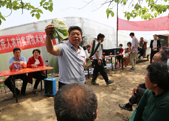 5月10日,在鹿邑縣馬鋪鎮(zhèn)完樓村殘疾人士付天軍的培訓(xùn)基地——蔬菜種植合作社助殘大棚內(nèi),來(lái)自鹿邑縣馬鋪鎮(zhèn)、渦北鎮(zhèn)產(chǎn)業(yè)集聚區(qū)的150多名建檔立卡貧困殘疾人,齊聚這里免費(fèi)學(xué)習(xí)黃瓜種植技術(shù),付天軍在大棚內(nèi)手把手地進(jìn)行指導(dǎo),來(lái)自華陽(yáng)學(xué)校的農(nóng)業(yè)專(zhuān)家李中蘭也應(yīng)邀在大棚內(nèi)對(duì)常見(jiàn)的病蟲(chóng)害進(jìn)行詳細(xì)講解。