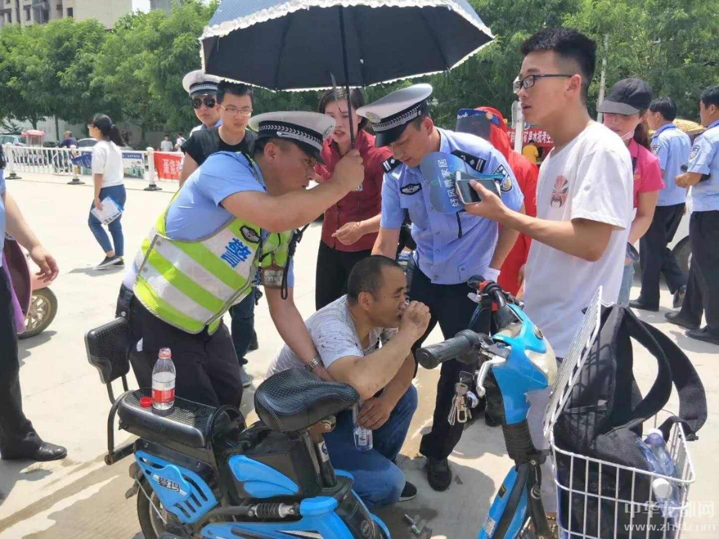 當日上午12時許,在沈丘縣一高大門口附近等待的一名考生家長癱坐在路邊,臉色蒼白,看起來身體極其不適。正在執(zhí)勤的劉濤見狀,一邊上前對車流、人流進行疏導,避免圍觀群眾太多引發(fā)意外事故,一邊迅速聯(lián)系沈丘縣人民醫(yī)院120急救車迅速前來搶救。