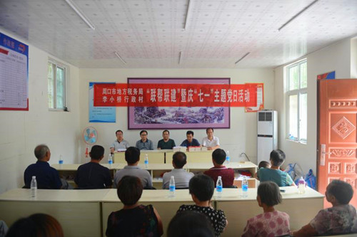 中華龍都網(wǎng)訊(周口報(bào)業(yè)全媒體記者 馬治衛(wèi) 通訊員 蘇童)為喜慶中國(guó)共產(chǎn)黨建黨97周年,夯實(shí)貧困村基層組織基礎(chǔ),促進(jìn)脫貧攻堅(jiān)工作深入開展,按照中共周口市委組織部和周口市直工委要求,6月26日上午,周口市地稅局組織相關(guān)科室負(fù)責(zé)人走進(jìn)幫扶村太康縣王集鄉(xiāng)李小村行政村開展“黨建聯(lián)幫聯(lián)建暨慶七一主題黨日”活動(dòng)。這是該局在幫扶村“兩委”成功換屆之后第一次舉辦主題黨日活動(dòng),市、縣、鄉(xiāng)各級(jí)領(lǐng)導(dǎo)及駐村工作隊(duì)和幫扶村30余名黨員代表參加了此次活動(dòng)。