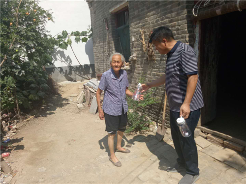 當(dāng)天,張照營(yíng)冒著酷暑走遍前進(jìn)村所聯(lián)系的6戶貧困戶家中送“清涼杯”。和張照營(yíng)一樣,在7月19日這天,太康縣委宣傳部、太康縣文廣新局的幫扶人員走村入戶,來(lái)到所幫扶的貧困群眾家中,開展扶貧扶志送“清涼”活動(dòng)。