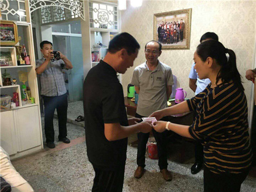 慰問中,張杰與22名參戰(zhàn)老兵、現(xiàn)役軍人家屬一起親切交流,詳細詢問他們的家庭和當前生活情況,并給他們送上慰問金和節(jié)日的問候。在李莊社區(qū),張杰來到現(xiàn)役軍人李佳威家中看望光榮軍屬,向他們致以節(jié)日問候,對他們支持國防事業(yè)表示感謝。在王寨社區(qū)參戰(zhàn)老兵王超申的家中,張杰說,參戰(zhàn)老兵是國家的寶貴財富,沒有他們當年的英勇奮戰(zhàn)就沒有我們現(xiàn)在幸福美滿的生活。各相關(guān)部門要特別尊重、特別關(guān)心、特別關(guān)愛和特別照顧參戰(zhàn)老兵,在全社會營造擁軍愛屬的良好氛圍。