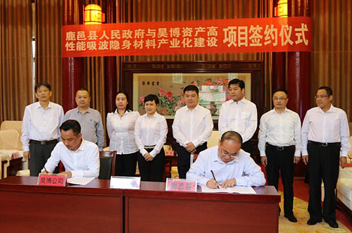 儀式上,閆家明首先代表縣四個(gè)班子領(lǐng)導(dǎo)和百萬(wàn)鹿邑人民對(duì)前來(lái)參加簽約儀式的李佳一行表示歡迎和感謝。他說(shuō),昊博資產(chǎn)高性能吸波隱身材料產(chǎn)品屬于新型材料,又是軍民融合項(xiàng)目,該項(xiàng)目的落地就實(shí)現(xiàn)全縣產(chǎn)業(yè)轉(zhuǎn)型升級(jí)具有里程碑意義。他指出,近年來(lái),鹿邑縣實(shí)施“產(chǎn)業(yè)興城、文化立縣”發(fā)展戰(zhàn)略,堅(jiān)持五區(qū)聯(lián)動(dòng)、推進(jìn)項(xiàng)目建設(shè),今年共謀劃項(xiàng)目131個(gè),總投資311億元,今年計(jì)劃總投資180億元,其中,列入省重點(diǎn)項(xiàng)目7個(gè)。經(jīng)過(guò)近年來(lái)的努力,鹿邑縣產(chǎn)業(yè)集聚區(qū)晉升為全省二星級(jí),被評(píng)為“全省十快產(chǎn)業(yè)集聚區(qū)”。在與昊博資產(chǎn)洽談交流后,縣委縣政府十分重視,經(jīng)過(guò)多方考察,一致認(rèn)為該項(xiàng)目符合國(guó)家產(chǎn)業(yè)政策,項(xiàng)目簽約落地以后,縣委縣政府將成立建設(shè)指揮部,全力以赴支持項(xiàng)目建設(shè)、企業(yè)發(fā)展。