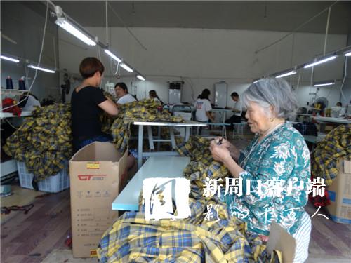 8月12日,在沈丘縣周營鎮(zhèn)歐營村一家服飾有限公司,當(dāng)?shù)氐牧羰貗D女正在加工訂單服裝。