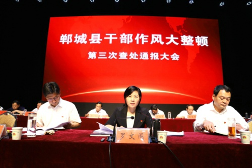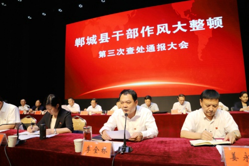 8月15日下午,鄲城縣召開干部作風(fēng)大整頓第三次查處通報(bào)大會(huì)。貫徹全市干部作風(fēng)大整頓查處通報(bào)會(huì)議精神和縣委十二屆四次全會(huì)暨縣委工作會(huì)議精神,通報(bào)典型案例,宣布處理決定,傳導(dǎo)工作壓力,夯實(shí)工作責(zé)任,為進(jìn)一步推進(jìn)各項(xiàng)工作任務(wù)落實(shí)、打好打贏脫貧攻堅(jiān)戰(zhàn)提供堅(jiān)強(qiáng)有力的作風(fēng)保障。縣委書記羅文閣發(fā)表講話,縣長(zhǎng)李全林主持。全縣副處級(jí)以上領(lǐng)導(dǎo)干部和縣、鄉(xiāng)、村各級(jí)各部門負(fù)責(zé)人參會(huì)。