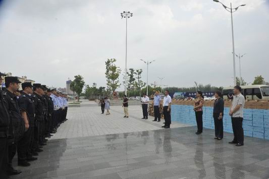 夏末秋初,鹿邑縣高溫天氣持續(xù)不斷,廣大民警忠誠(chéng)履職、堅(jiān)守一線,戰(zhàn)高溫、斗酷暑,全力維護(hù)人民群眾生命財(cái)產(chǎn)安全。8月16日下午,鹿邑縣四大班子領(lǐng)導(dǎo)付吉廣、張麗娟、王新民、劉銀、何新敏、宋克言等領(lǐng)導(dǎo)深入執(zhí)勤一線看望慰問(wèn)了縣公安局交警大隊(duì)、巡特警大隊(duì)執(zhí)勤民警,并送去慰問(wèn)品。