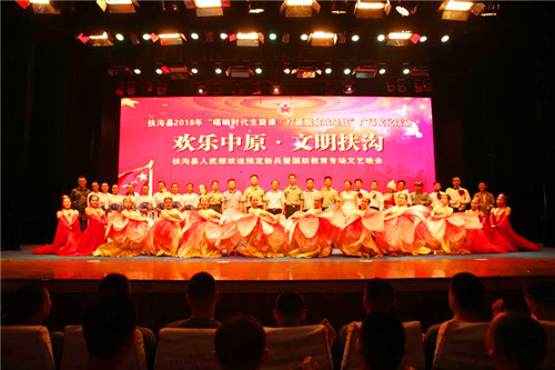 昔日社會青年,明日祖國棟梁。8月16日晚,胸懷著中國夢、強軍夢的扶溝縣282名預定新兵端坐在縣人民會堂,與各級領導和社會各界人士共同觀看了一場專為他們舉辦的晚會——扶溝縣人武部歡送預定新兵暨國防教育專場文藝晚會。