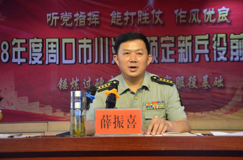 8月17日上午,川匯區(qū)預(yù)定新兵役前教育訓(xùn)練動(dòng)員會(huì)上,周口市征兵辦公室主任、周口軍分區(qū)副司令員薛振喜結(jié)合自身經(jīng)歷,為現(xiàn)場(chǎng)近300名體檢、政審雙合格預(yù)征青年上了一堂生動(dòng)的國(guó)防教育課,現(xiàn)場(chǎng)掌聲雷動(dòng)。