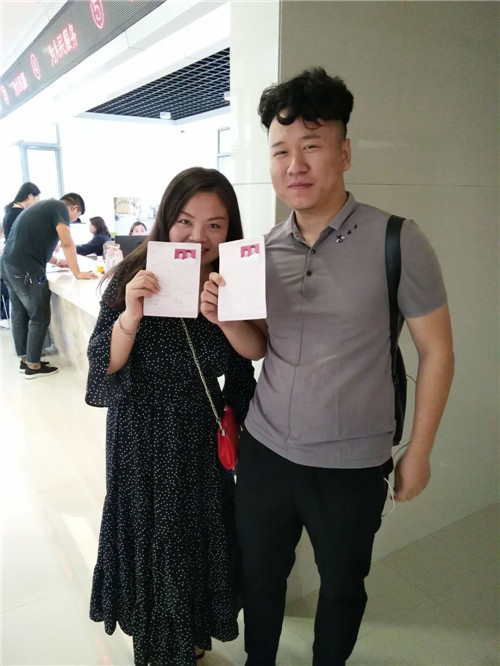 市民劉麗(化名)和男友相識(shí)多年,他們從朋友發(fā)展到戀人,今天一早就來(lái)排隊(duì)領(lǐng)證,拿到紅彤彤的結(jié)婚證,二人臉上露出幸福的笑容?!捌呦κ侵袊?guó)的情人節(jié),今天領(lǐng)證很浪漫,以后每年的七夕,都是我們的結(jié)婚紀(jì)念日?!?劉麗說(shuō)。